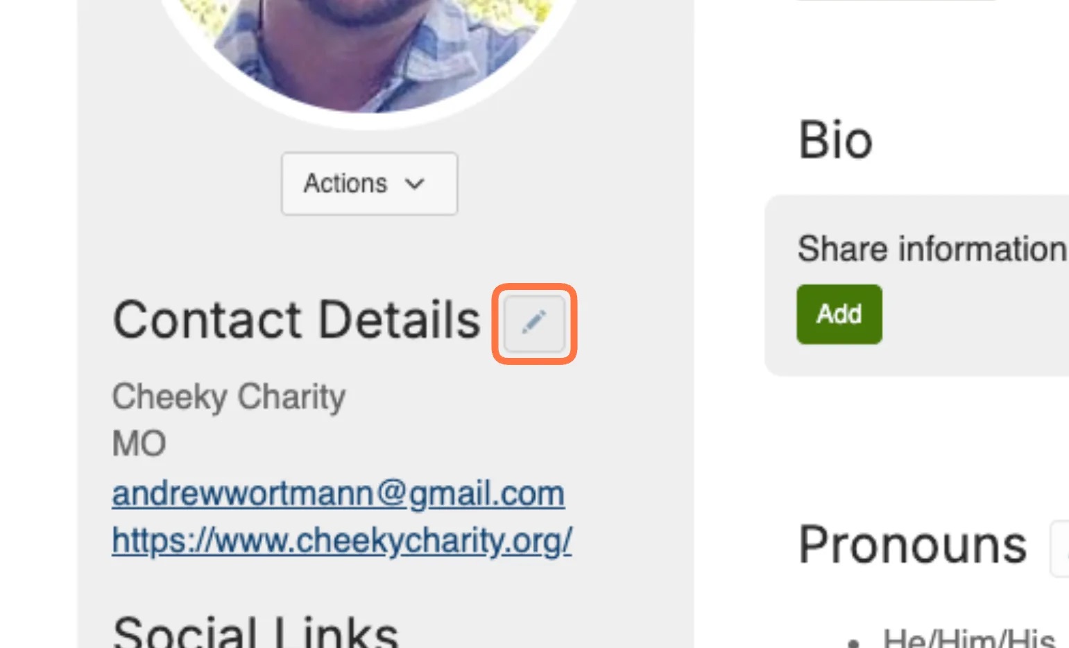 profile page, please select the pencil icon next to "Contact Details" in the left column.